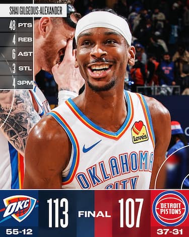 La trasferta di Detroit, con di fronte una delle squadre più in forma della lega e con qualche assenza pesante, non è affatto semplice per Oklahoma City. La vittoria arriva grazie all’ennesima serata di grazia in stagione per Shai Gilgeous-Alexander, che nel finale ricaccia indietro i Pistons e chiude con 48 punti, 6 assist, 4 rimbalzi e 17/26 dal campo