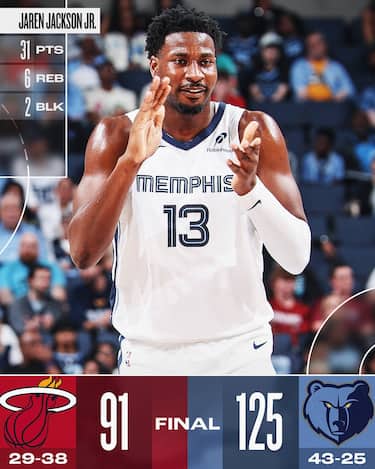 Nessun problema per Memphis, che in casa infligge a una Miami davvero mai in partita la 7^ sconfitta consecutiva. I Grizzlies impongono il loro ritmo di gioco già nel 1° quarto e gestiscono grazie alle buone prove del rientrante Jaren Jackson Jr. (31 punti e 6 rimbalzi) e del solito Desmond Bane (22 punti, 10 rimbalzi e 8 assist). A scuotere gli Heatnon basta nemmeno l’ingresso in quintetto del rookie Kel’el Ware, autore di una doppia doppia da 19 punti e 11 rimbalzi