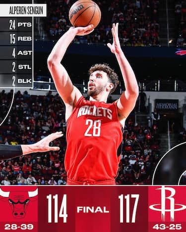 Ci vogliono le ottime prestazioni di Jalen Green, autore di 28 punti e dei canestri decisivi nel 4° quarto, e la doppia doppia di Alperen Sengun (24 punti e 15 rimbalzi) affinché i Rockets battano in volata i Bulls e ottengano così la loro 6^ vittoria consecutiva. Chicago resta in parttia praticamente fino alla fine, quando un paio di errori di Coby White, Migliore dei suoi con 23 punti e 7 rimbalzi, spianano la strada a Houston
