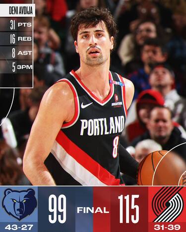 È ancora Deni Avdija, autore di una prova da 31 punti, 16 rimbalzi e 8 assist, a trascinare Portland a una netta vittoria sui Grizzlies, arrivati al Moda Center ancora senza Ja Morant. I Blazers hanno anche 22 punti da Anfernee Simons e 17 da Shaedon Sharpe e comandano nel punteggio fin dall’inizio, Memphis prova ad affidarsi al solito Desmond Bane(20 punti e 7 rimbalzi) ma finisce per giocare una partita insolitamente pigra e non trova mai lo spunto giusto per tentare la rimonta