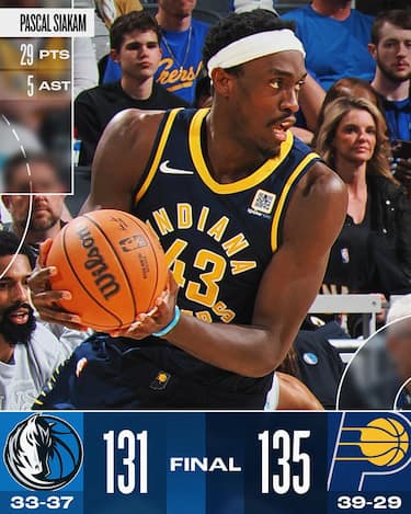 Vittoria in volata e meno facile del previsto per i Pacers, che subiscono a lungo l’energia di Dallas, guidata dal ritrovato P.J. Washington (26 punti e 5 rimbalzi) e dai 24 punti in uscita dalla panchina di Jaden Hardy. I Mavs, però, crollano nel finale, subendo un parziale di 8-1 negli ultimi 30 secondi di gara che decide la sfida. Indiana, priva di Tyrese Haliburton, viaggia invece sui 29 punti di Pascal Siakam e sui 23 con anche 7 rimbalzi di Bennedict Mathurin