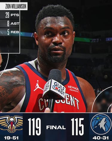 La sorpresa della serata arriva da Minneapolis, dove Zion Williamson (29 punti e 8 assist) trascina i Pelicans alla vittoria in volata sui T’Wolves. Minnesota inciampa così nella 2^ sconfitta consecutiva, che guasta l’ottimo momento vissuto sulla scorta delle 8 vittorie di fila accumulate in precedenza. Ai padroni di casa non bastano i 29 punti di Anthony Edwards perché la squadra va inaspettatamente sotto a rimbalzo (46-40 il conteggio in favore di New Orleans) e soprattutto subisce gli avversari nel pitturato (54-36 il totale dei punti segnati in area in favore dei Pelicans)
