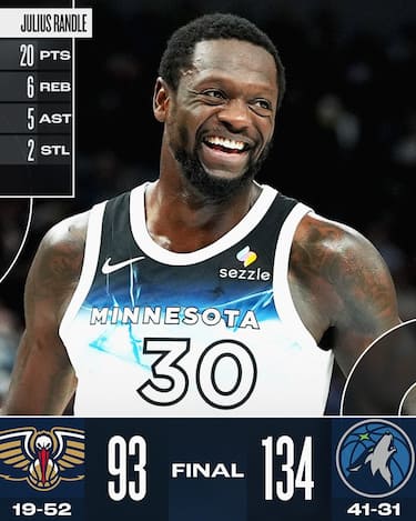 Dopo la sconfitta subita giusto mercoledì notte per mano dei Pelicans, Minnesota si prende una pronta rivincita dominando senza alcun problema una versione ancora una volta molto rimaneggiata di New Orleans. I T’Wolves, guidati dai 20 punti di Julius Randle e dalla doppia doppia da 15 punti e 11 rimbalzi di Rudy Gobert, possono dare quindi ampio spazio ai loro panchinari e finiscono col mandare ben 7 giocatori in doppia cifra