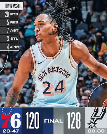 In una sfida tra due squadre ampiamente rimaneggiate, gli Spurs vanno avanti anche di 16 punti ma si fanno rimontare e superare nel 4° quarto, solo per poi recuperare e vincere sulle spalle di un Jeremy Sochan da 23 punti e 9 rimbalzi e di un Devin Vassell da 20 punti e 7 assist, decisivo nei possessi che nel finale di partita sigillano la vittoria di San Antonio. Ai Sixers non basta un’altra ottima prestazione di Quentin Grimes, i cui 25 punti e 10 rimbalzi servono a poco