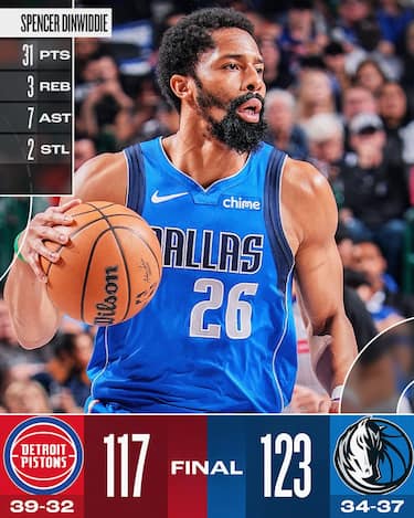 Contro la squadra che l’aveva scelto al Draft nel 2014, Spencer Dinwiddie gioca una delle migliori partite della sua stagione e guida Dallas alla vittoria con 31 punti e 7 assist, tirando 9/12 dal campo e gestendo tutti i possessi decisivi nel finale