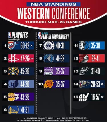 Con Cleveland e Oklahoma City saldamente al comando delle due Conference, il tabellone dei playoff comincia a prendere forma e già al primo turno potrebbero esserci sfide dal grande fascino e scontri diretti tra squadre con ambizioni da titolo, soprattutto a Ovest