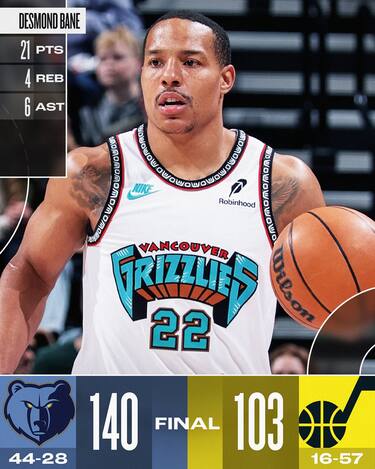 UTAH JAZZ-MEMPHIS GRIZZLIES 103-140