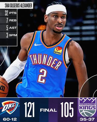 I Thunder sbancano Sacramento e ottengono così la loro 60^ vittoria in regular season, importanti successi per Houston, al momento in 2^ posizione a Ovest, e per Memphis, che sorpassa i Lakers e sale al 4° posto in classifica