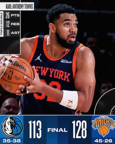 Per superare una Dallas tutt’altro che arrendevole nonostante le tante assenze, ai Knicks serve un grande 3° quarto e ci vogliono anche le triple doppie di Karl-Anthony Towns (26 punti, 12 rimbalzi e 11 assist) e Josh Hart (16 punti, 12 rimbalzi e 11 assist). Tra i Mavs, che lasciano a riposo Anthony Davis, rientrato la sera prima, si prende il suo spazio Brandon Williams, autore di 22 punti con 7/11 al tiro in uscita dalla panchina
