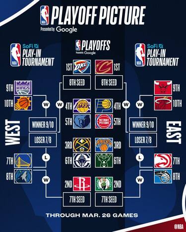 Se la stagione finisse oggi, questi sarebbero gli accoppiamenti al torneo play-in e nei playoff delle due conference