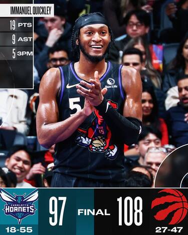 TORONTO RAPTORS-CHARLOTTE HORNETS 109-97