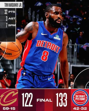 Il vantaggio che i Pistons si costruiscono entrando nel 4° quarto e che poi difenderanno fino alla fine ha un grande protagonista in Tim Hardaway Jr., che contro Cleveland conferma ancora una volta le doti di tiratore che ne hanno contraddistinto l’ormai lunga carriera in NBA e chiude con 32 punti frutto soprattutto dell’eccellente 7/11 da dietro l’arco