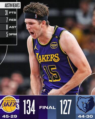 Ai Lakers, dopo la dolorosa sconfitta a fil di sirena di Chicago, serve un riscatto immediato e a trascinare la squadra a Memphis è un Austin Reaves che conferma il suo ottimo momento. La guardia guida i suoi alla vittoria con 31 punti, di cui 9 segnati nel combattutissimo 4° quarto, a cui aggiunge anche 8 assist e 7 rimbalzi