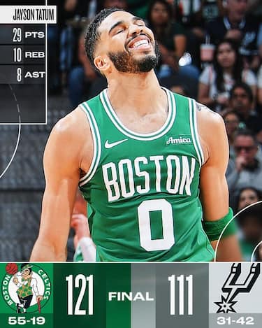 Jayson Tatum sfiora la tripla doppia con 29 punti, 10 rimbalzi e 8 assist, Jrue Holiday aggiunge 21 punti e 6 assist e i Celtics passano agilmente a San Antonio ottenendo l’8^ vittoria di fila. Gli Spurs provano a giocarsela sulle spalle di uno Stephon Castle da 22 punti e 8 assist e dei 23 punti in uscita dalla panchina segnati da Keldon Johnson, ma di fatto i campioni NBA in carica mettono le mani sulla partita già nel 1° quarto e poi conducono fino alla fine senza lasciare scampo agli avversari