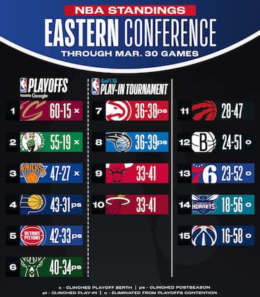 Milwaukee non approfitta del ko di Detroit e rimane al sesto posto che vorrebbe dire primo turno di playoff contro New York. Atlanta mantiene il vantaggio di mezza gara su Orlando, mentre Miami ha riagganciato Chicago a pari record per il nono posto. Sono otto le sconfitte in fila per Philadelphia