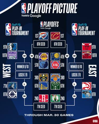 Se la stagione finisse oggi, questi sarebbero gli accoppiamenti sia in ottica play-in che in ottica tabellone playoff nelle due conference