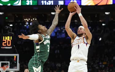 Senza Durant, e in attesa di capire in che condizioni è Bradley Beal, l’attacco dei Suns grava sulle spalle di Devin Booker, che contro i Bucks prova a fare del suo meglio, si prende 32 tiri e chiude con la doppia doppia da 39 punti e 11 assist che però non basta per strappare una vittoria