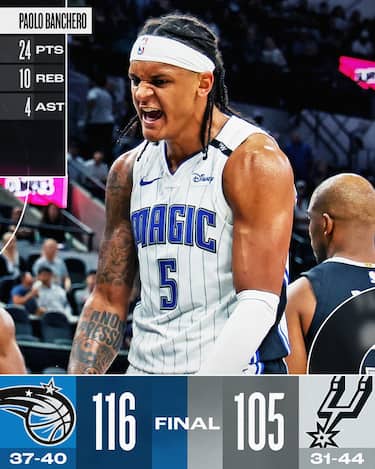 È Paolo Banchero, autore di una prova da 24 punti, 10 rimbalzi e 4 assist a trascinare i Magic a San Antonio. Gli ospiti danno lo strappo decisivo nel 4° quarto dopo che la partita era stata fin lì equilibrata, con gli Spurs sorretti dalla serata da 24 punti con 9/14 al tiro di Harrison Barnes a dare battaglia nonostante la sostanziale assenza di motivazioni legate alla classifica. Orlando, però, trova anche un Franz Wagner da 24 punti e 7 assist e 23 punti con 7/9 da tre da un ottimo Kentavious Caldwell-Pope e finisce per avere la meglio