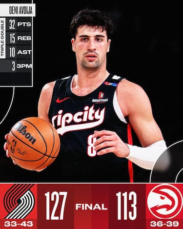 32 punti, 15 rimbalzi, 10 assist e 2 palle recuperate, potrebbe assomigliare al tabellino personale a cui hanno abituato MVP di ieri e di oggi come Nikola Jokic o Giannis Antetokounmpo, invece sono le statistiche mandate a referto da Deni Avdija ad Atlanta, nell’ennesima prova da incorniciare nella eccellente stagione disputata dall’israeliano