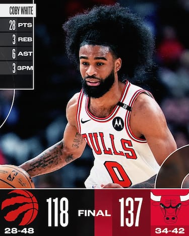 I Bulls non si lasciano scappare l’occasione, sfruttano la sfida contro una Toronto molto rimaneggiata, da cui emerge il solo Immanuel Quickley con 17 punti, ottengono una netta vittoria e si assicurano un posto al play-in a Est. Chicagocontrolla fin dall’inizio e viaggia tranquilla grazie ai 28 punti di Coby White e ai 22 di Nikola Vucevic, tra le fila dei padroni di casa si rivede poi anche Talen Horton-Tucker, autore di una prova da 27 punti in uscita dalla panchina