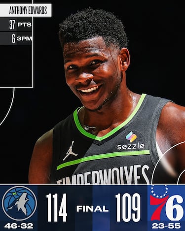 Quando i Sixers si riportano a -2 e tra i T’Wolves comincia a serpeggiare la paura di poter perdere una partita che sembrava già vinta, la palla finisce nelle mani di Anthony Edwards. E Ant, con il cronometro dei 24 che sta per scadere viene raddoppiato ma riesce comunque a prendersi e a segnare la tripla che riporta a +5 i suoi con poco più di 7 secondi da giocare. È il sigillo su una vittoria importantissima per Minnesota e sulla prestazione da 37 punti con 12/21 dal campo