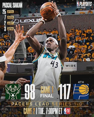 Quella andata in scena tra Indiana e Milwaukee non è stata una sfida competitiva. I Pacers infatti hanno fatto quello che hanno voluto contro i Bucks, dominando il match dall’inizio alla fine e portandosi in vantaggio nella serie di primo turno della Eastern Conference. I padroni di casa hanno toccato la doppia cifra di vantaggio sul finire del primo quarto e sfondato il +20 in chiusura di primo tempo, dandolo giusto qualche chance agli avversari di rientrare sotto la doppia cifra di vantaggio, mai sfruttata dagli ospiti. Sono sei i giocatori in doppia cifra guidati dai 25 punti di Pascal Siakam e i 19 di Myles Turner per la squadra di coach Rick Carlisle, tirando con percentuali stellari dal campo (52%) e in difesa tenendo gli avversari solamente al 42%, di cui un pessimo 8/35 dalla lunga distanza