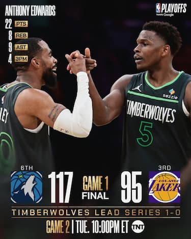 È una grande prova di squadra, con la difesa che concede agli avversari il 39.8% dal campo e l’attacco che chiude con il 50% al tiro da tre, a spingere Minnesota al colpo in trasferta che apre la serie contro i Lakers. I padroni di casa, a dire il vero, partono meglio, ma nel 2° quarto i Timberwolves prendono possesso della partita e impongono il loro ritmo per poi dilagare nel lungo finale che sa un po’ di garbage time. Serata complicata sia per LeBron James, 18 punti con 8/18 al tiro, e per Austin Reaves, 16 con 5/13 dal campo, che subiscono in maniera evidente la fisicità della difesa avversaria