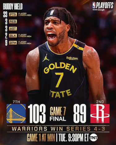 Se Hield è il vero e proprio eroe della serata in casa Warriors, la vittoria in gara-7 porta anche la firma delle due stelle della squadra. 19 dei 22 punti di Steph Curry arrivano nel secondo tempo, e nella sua gara ci sono anche 10 rimbalzi e 7 assist, mentre Jimmy Butler chiude con 20 punti, 8 rimbalzi, 7 assist e le giocate che quando Houston si riavvicina ricacciano indietro gli avversari