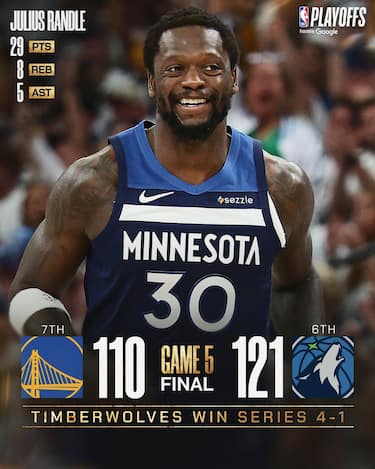 Non c’è storia in gara-5 a Minneapolis, perché i padroni di casa, di fronte alla possibilità di chiudere la serie e tornare alle finali della Western Conference a un anno di distanza, non sbagliano e travolgono una Golden State che senza Steph Curry si conferma con armi troppo spuntate. I T’Wolves comandano fin dall’inizio, dominano nel pitturato (72-50il conteggio dei punti segnati in area), scappano anche sul +25 nel 3° quarto e non permettono più agli avversari di risollevare la testa