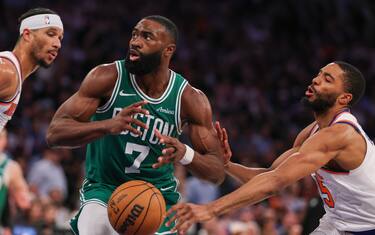 Sull’attacco dei Celtics pesa ovviamente l’assenza di Tatum e pesano anche le condizioni di Kristaps Porzingis, che parte dalla panchina ma gioca meno di 12 minuti segnando soli 4 punti, ma New York ci mette molto del suo nel 36% dal campo di squadra concesso agli avversari e nelle 15 palle perse forzate. E anche a rimbalzo i Knicks dominano, chiudendo con un conteggio di 55-36