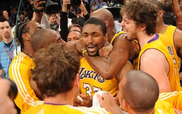 - Di nuovo loro, Lakers e Celtics, due anni dopo. Questa volta si va a gara-7 e la partita è tiratissima e poco più di un minuto dalla fine i Lakers sono avanti 76-73 e hanno la palla in mano. O, meglio, la palla l’ha ovviamente in mano Kobe Bryant, che sulla pressione della difesa di Boston si trova di fatto costretto a passarla a Ron Artest. L’ala gialloviola, che ai playoff ha tirato con il 29.1% dalla lunga distanza, si trova poco dietro la linea dei tre punti e non ha esitazioni. Il suo tiro lancia i Lakers sul +6 e quindi alla vittoria, mentre un errore, affatto improbabile visti i precedenti di Artest al tiro da tre, avrebbe riaperto i giochi e aperto ai Celtics la porta verso una clamorosa vittoria in trasferta a Los Angeles in gara-7