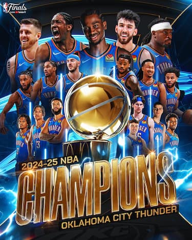 A segnare gara-7 è l’infortunio di Tyrese Haliburton, che esce dal campo con 4:55 ancora da giocare nel 1° quarto senza poter più rientrare. I Pacers, senza la loro stella e guidati da un T.J. McConnell ancora una volta eroico e autore di 16 punti in uscita dalla panchina, resistono fino a metà del 3° quarto, quando Oklahoma City alza il livello in difesa e sulle spalle di uno Shai Gilgeous-Alexander da 29 punti e 12 assist, poi eletto MVP delle Finals, prima dilaga, quindi soffre il ritorno di Indiana e alla fine s’invola verso la vittoria e il primo titolo nella storia dei Thunder