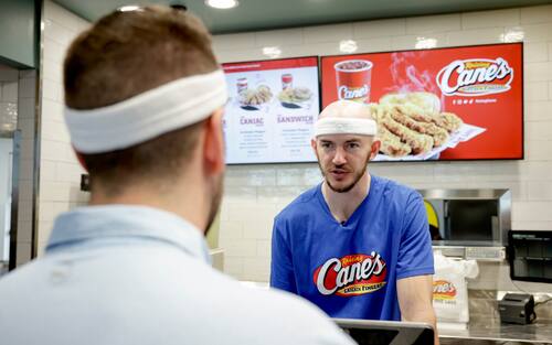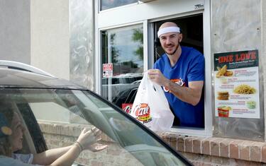 "Sono Alex Caruso, felice di servirvi, oggi. Cosa vi posso dare? Una combo two-box con insalata di cavolo, niente pane abbrustolito. Ok, arriva"