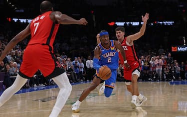 La gara inaugurale della stagione non delude affatto le attese, anzi. Dopo la tradizionale cerimonia degli anelli di campioni NBA ai Thunder, infatti, la sfida tra Oklahoma City e Houston si trasforma in vero e proprio scontro all’ultimo canestro. Ultimo canestro che con 2.3 secondi da giocare dei regolamentari segna Shai Gilgeous-Alexander, mentre Alperen Sengun fallisce quello della possibile vittoria per i Rockets sulla sirena. I due sono grandi protagonisti anche nel primo overtime, che non risolve nulla perché le due squadre finiscono ancora in parità a quota 115. L’equilibrio regna anche nel secondo supplementare, ma il finale, che sembra quasi scritto da un abile sceneggiatore, premia i Thunder.