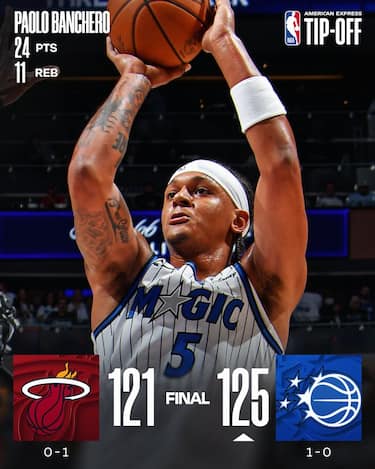 Il derby della Florida premia Orlando, che al termine di una partita combattutissima ha la meglio su Miami solo negli ultimi possessi. Protagonisti attesi per i Magic, Paolo Banchero e Franz Wagner non deludono con 24 punti a testa, mentre sono 23 quelli di Desmond Bane al suo esordio con la nuova maglia. Agli Heat non bastano i 28 di Norman Powell, a sua volta esordiente con la sua nuova squadra, e nemmeno la buonissima prova dell’altro esordiente di serata Simone Fontecchio, autore di 13 punti in uscita dalla panchina in 19 minuti giocati