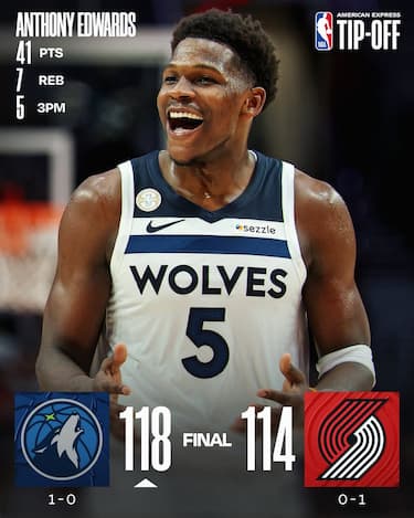A Minnesota serve un Anthony Edwards già in forma scintillante e mattatore di serata con 41 punti e 7 rimbalzi per avere la meglio di una solida Portland, che cede solo nel finale dopo aver combattuto a lungo alla pari con gli avversari grazie soprattutto ad un Jerami Grant da 29 punti in uscita dalla panchina e dal solito Deni Avdija (20 punti e 7 rimbalzi)