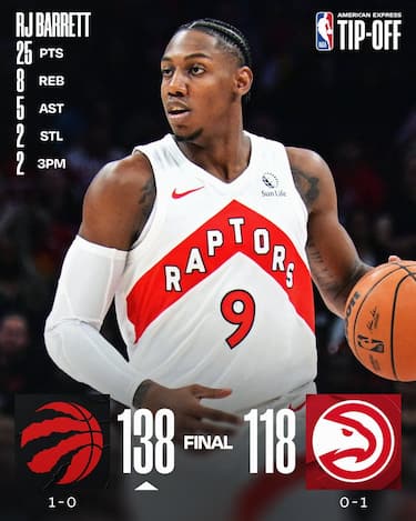 La prima sorpresa della notte arriva da Atlanta, dove Trae Young, autore di 22 punti ma con 5/14 al tiro, e compagni crollano nel secondo tempo e cadono rumorosamente sotto i colpi del trio formato da R.J. Barrett (25 punti), Scottie Barnes (22 con anche 9 assist) e Gradey Dick (21 punti in uscita dalla panchina), che trascina Toronto a una vittoria netta e molto convincente