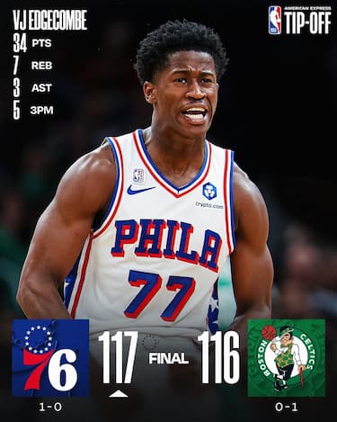 La classicissima della Eastern Conference non delude le attese, tanto che nel finale è Payton Pritchard ad avere per due volte il tiro della possibile vittoria per i Celtics, ma il suo doppio errore fa gioire Philadelphia. Prima del finale concitato le due squadre si erano scambiate sorpassi e controsorpassi, con Jaylen Brown e Derrick White, autori di 25 punti a testa, e Tyrese Maxey (40 punti) e il rookie VJ Edgecombe (34 punti) a recitare il ruolo di protagonisti