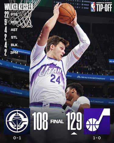 La seconda sorpresa di serata arriva da Salt Lake City, dove i Clippers vengono travolti da Utah durante un 1° quarto da 43-19 per i padroni di casa che segna da subito l’esito finale della partita. Walker Kessler (22 punti, 9 rimbalzi e 4 assist) e Lauri Markkanen (20 punti e 6 rimbalzi) sono i protagonisti principali dell’ottima prova dei Jazz, mentre dall’altra parte il trio di stelle formato da Kawhi Leonard, James Harden e Bradley Beal tira con un pessimo 10/26complessivo dal campo, condannando la squadra a un debutto da dimenticare in fretta