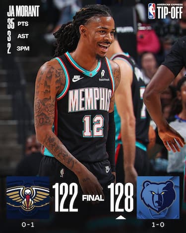 La sfida tra due squadre che in questa stagione cercheranno di ritrovarsi si rivela assai combattuta, con i Pelicans che trascinati da un Zion Williamson in serata e autore di una prova da 27 punti, 9 rimbalzi e 5 assist chiudono avanti il primo tempo. Memphis, però, cambia marcia nel 3° quarto e grazie a Ja Morant (35 punti e 13/20 dal campo) rimonta, supera e vince in volata
