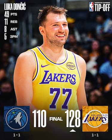 Pronto riscatto dei Lakers dopo l’esordio con sconfitta contro Golden State. A guidare i gialloviola, che aumentano il ritmo e prendono in mano la gara nella sua fase centrale, è ancora una volta uno strepitoso Luka Doncic, autore di una prova da 49 punti, 11 rimbalzi e 8 assist, con Austin Reaves (25 punti) e Rui Hachimura (23) a seguirne le orme. Serata spenta per Minnesota, che ha 31 punti da Anthony Edwards e 26 da Julius Randle ma non da mai l’idea di poter impensierire gli avversari