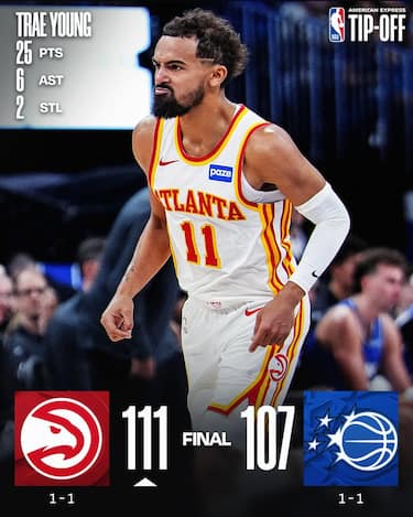 Dopo la brutta sconfitta casalinga contro Toronto all’esordio stagionale, gli Hawks si riprendono subito andando a vincere in volata ad Orlando. Trae Young fatica ancora al tiro (7/18), ma 6 dei suoi 25 punti arrivano negli ultimissimi possessi che decidono la partita. Dall’altra parte Franz Wagner prova a trascinare i suoi con 27 punti, ma l’attacco dei Magic si blocca proprio sul più bello