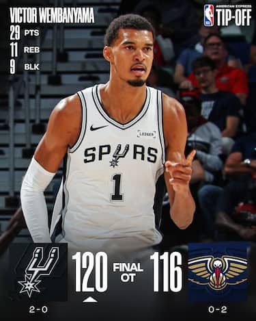 Gli Spurs passano a New Orleans anche con un Victor Wembanyama ‘normale’, che sbaglia il tiro della vittoria al termine dei tempi regolamentari, sfiora la tripla doppia con 29 punti, 11 rimbalzi e ben 9 stoppate ma esce per falli nell’overtime. Tripla doppia vicina anche per un ottimo Zion Williamson, che prova a trascinare i suoi alla vittoria con 27 punti, 10 rimbalzi e 7 assist ma va solo vicino al traguardo