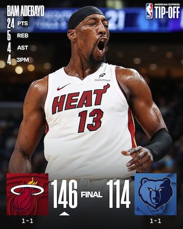 Grande prova degli Heat a Memphis, con la partenza sprint che regala agli ospiti già un +21 al termine del 1° quarto e lancia Bam Adebayo (24 punti) verso una gara dominata. Buonissima prestazione da parte di Simone Fontecchio, che segna 14 punti in uscita dalla panchina e aggiunge anche 4 rimbalzi, 2 assist e 2 palle rubate alla sua serata. Serata no, invece, per i Grizzlies, a cominciare da un Ja Morant autore di 12 punti con 4/16 dal campo