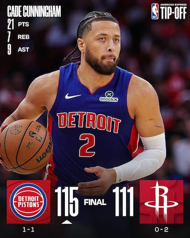 Sono il canestro del panchinaro Paul Reed, autore di 13 punti, e due liberi segnati da Cade Cunningham (21 punti, 9 assist e 7 rimbalzi) nel finale a regalare a Detroit la vittoria in volata a Houston. I Rockets, sconfitti dai Thunder nella opening night, non sfruttano un Kevin Durant da 37 punti e incassano quindi il secondo stop stagionale in due partite