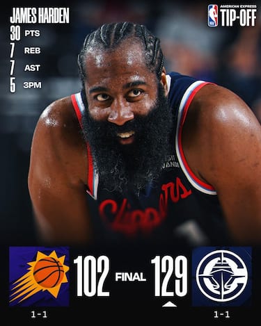 La sfida tra Clippers e Suns dura di fatto un quarto, perché già nel secondo parziale i padroni di casa, trascinati da James Harden (30 punti, 7 assist e 7 rimbalzi) prendono il largo e quindi controllano senza troppi problemi fino alla sirena finale. Phoenix gioca una partita molto discontinua e, almeno per una sera, trova un Devin Booker sottotono con soli 18 punti e 10 tiri totali presi