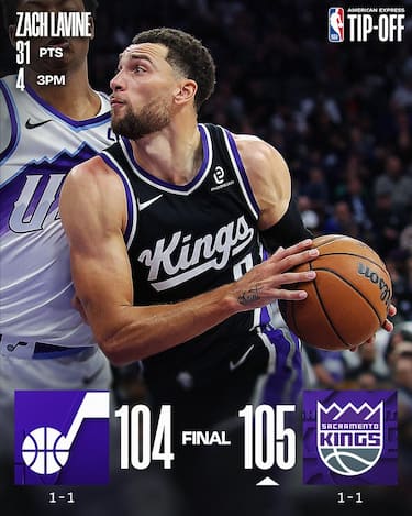 La sfida tra Kings e Jazz si rivela tiratissima e viene decisa dagli ultimi due possessi, nei quali Domantas Sabonis (12 punti e 12 rimbalzi) segna in lay-up, mentre Brice Sensabaugh (15 punti) e Keyonte George (18 punti e 10 assist) sbagliano i due tiri che potrebbero regalare il colpo in trasferta a Utah proprio poco prima del suono della sirena finale