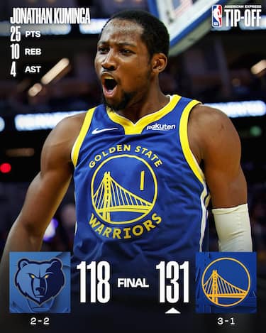 In una serata in cui Steph Curry segna 16 punti sono gli altri Warriors a prendersi la scena, a partire da Jonathan Kuminga (25), Brandin Podziemski (23) e Moses Moody (20 come Jimmy Butler) per la terza vittoria su quattro degli Warriors. I 23 punti di Ja Morant non bastano ai Grizzlies, che non vincono al Chase Center da sette partite consecutive (ultimo successo quattro anni fa esatti)
