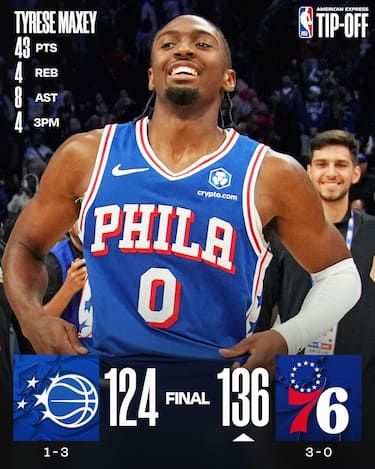 Senza Joel Embiid tenuto a riposo, i Sixers non perdono un colpo trascinati dalle loro guardie. Tyrese Maxey è decisivo con 43 punti di cui 8 in fila in un momento chiave del quarto periodo, mentre il rookie VJ Edgecombe ne mette altri 26. Terzo ko in fila per i Magic, a cui non bastano i 32 punti di Paolo Banchero, i 24 di Desmond Bane e i 22 di Franz Wagner