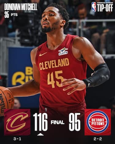 Terzo successo consecutivo per i Cavs, che piazzano un parziale di 14-0 nel secondo quarto e non si voltano più indietro. Donovan Mitchell è totalmente immarcabile per la difesa di Detroit e chiude con 35 punti in 29 minuti, mentre i padroni di casa mandano solo quattro giocatori in doppia cifra guidati da un Cade Cunningham da 12 punti e 3/14 al tiro